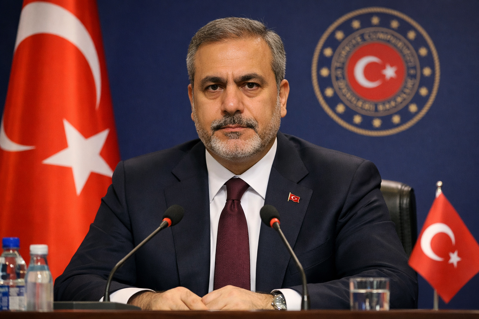 Bei einer gemeinsamen Pressekonferenz in Ankara mit seinem syrischen Amtskollegen Esad Hasan Shaybani äußerte sich Fidan zur aktuellen Lage im Nahen Osten sowie zum vorläufigen Waffenstillstand zwischen den Vereinigten Staaten und dem Iran.